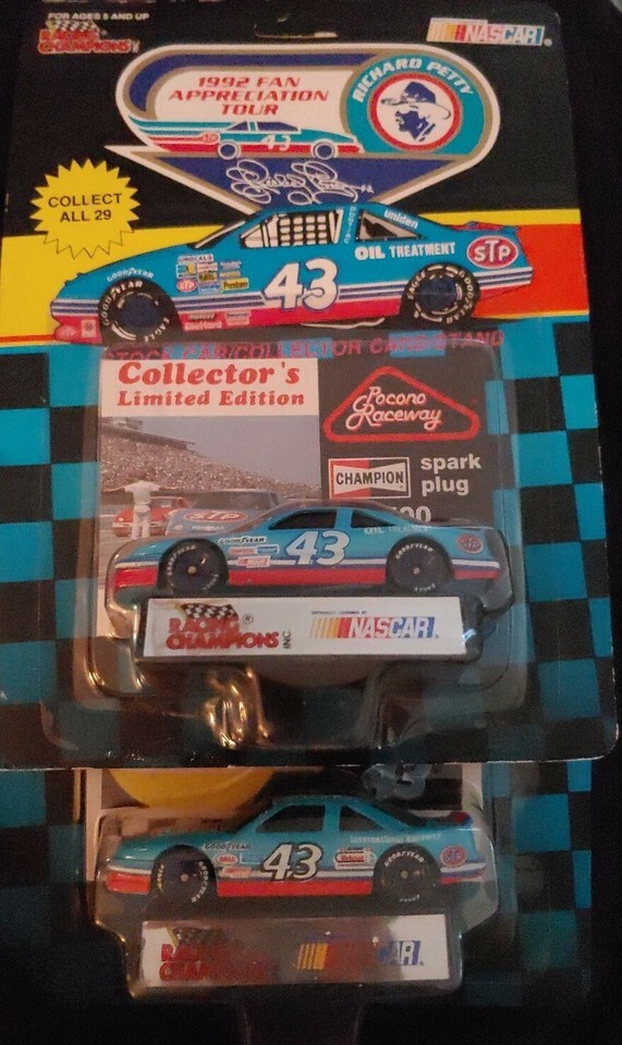 Richard Petty 1992 Fan Appreciation Tour Diecast (Pocono Bristol). Condition is decent. The bristol one is in very good condition. The pocono card is in fair condition. These cars are part of a 29 car collection that was only available at the tracks the cars represent so they are quite rare and very special