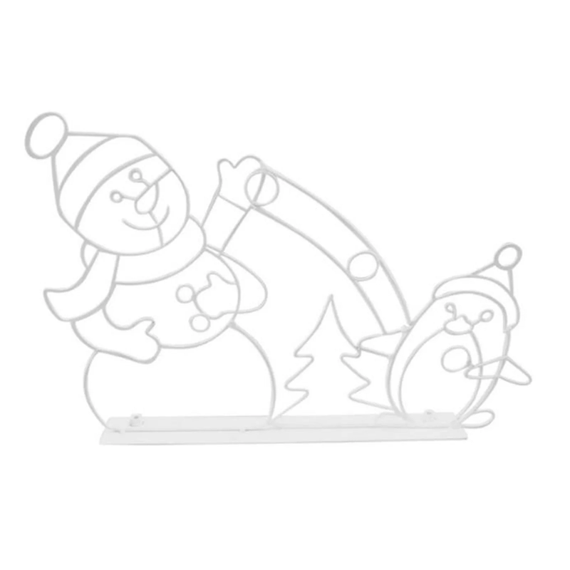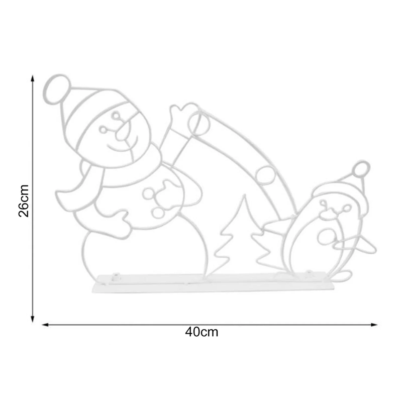 Unique and festive Christmas ornament that brings health and good luck to your loved ones.LED lights create a charming animation of a juggling snowman, adding a playful touch to your decorations.Handcrafted from high-quality metal for durability and suitable for both indoor and outdoor use.Stylish and personalized design that stands out from traditional Christmas decorations.Perfect for decorating your home, garden, patio, or any indoor space to create a strong Christmas atmosphere. Description: Introducing our unique christmas ornament, the perfect decorative gift that will bring a festive atmosphere to your home. This ornament is not only a great choice for Christmas gifts but also adds health and good luck to your children, family, or friends. Its versatile design makes it suitable for various scenes and occasions, making it a wonderful decoration and blessing.Featuring LED lights that flash, this ornament showcases a charming snowman taking off his hat while extending his right leg to greet passers-by. The skeleton is securely attached to the ground with piles, ensuring that the snowman never drops a gift. Passers-by will be delighted by the flexible juggling animation provided by this gift-juggling snowman.Crafted from high-quality metal, this ornament is exceptionally durable and can be used both indoors and outdoors. It can be reused for many years, allowing you to showcase your unique taste in Christmas decorations. Your friends and guests will be captivated by its charm when they visit your home.Whether you choose to decorate your outdoor garden patio or indoor living room, this ornament can be placed or hung to create a strong Christmas atmosphere. Its personalized design sets it apart from traditional decorations and makes it shine brightly. It is the perfect choice for adding a touch of Christmas magic to your home. Item Name: Christmas Ornament Material: Iron Art Applicable Holidays: ChristmasPower Supply: 2 x AA Batteries (Not Included)Features: Bright Color, Festive, Safe Size Details: Snowman: 20cm x 30cm/7.9" x 11.8" (Approx.)Snowman And Penguin: 26cm x 40cm/10.2" x 15.7" (Approx.) Notes: Due to the light and screen setting difference, the item's color may be slightly different from the pictures.Please allow slight dimension difference due to different manual measurement. Package Includes: 1 x Christmas Ornament