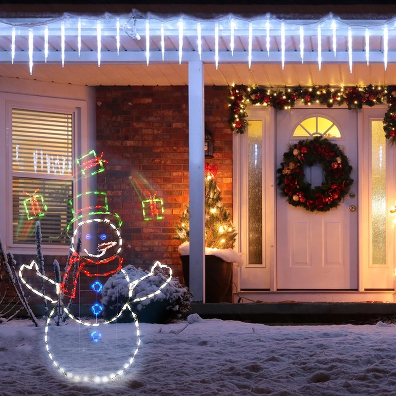 Unique and festive Christmas ornament that brings health and good luck to your loved ones. LED lights create a charming animation of a juggling snowman, adding a playful touch to your decorations. Handcrafted from high-quality metal for durability and suitable for both indoor and outdoor use. Stylish and personalized design that stands out from traditional Christmas decorations. Perfect for decorating your home, garden, patio, or any indoor space to create a strong Christmas atmosphere.