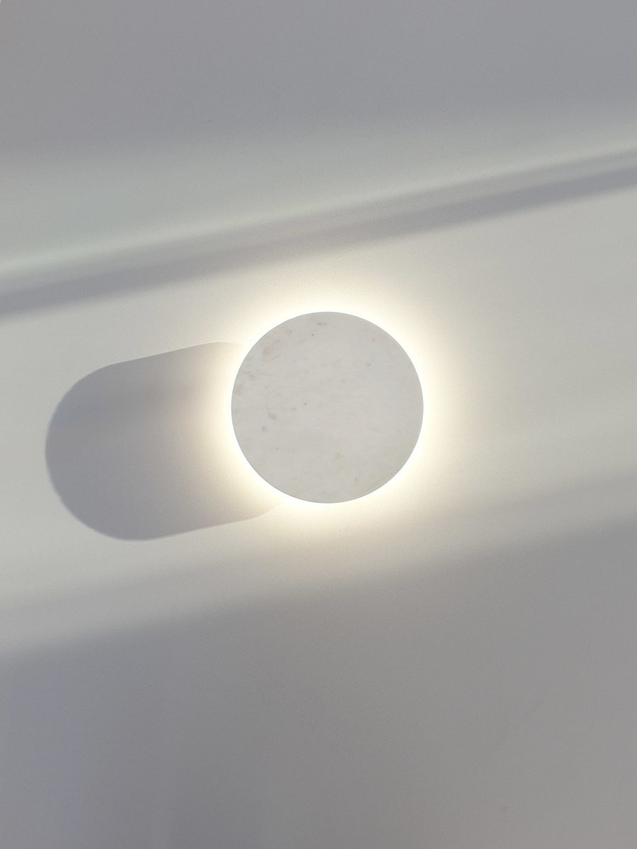 MarmorOrbis Albo - designer white marble wall sconce with back lighting