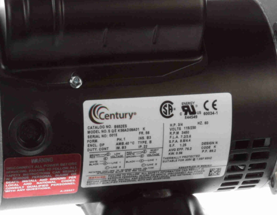 CENTURY B652, A QE K56AD09A01, General Purpose Motor, 3/4 HP, 3600 RPM, 56 FR