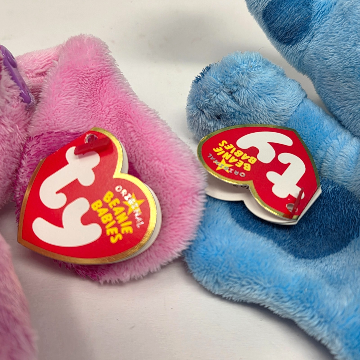 TY BLUES CLUES BEANIE BABIES BLUE & MAGENTA STUFFED ANIMAL PLUSH NEW W TAG
