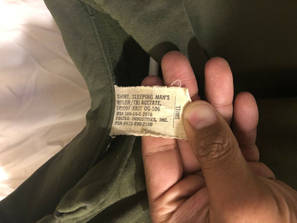 PRE-OWNED 1969 ORIGINAL USMC ARMY USN USAF SHIRT SLEEPING HEAT RETENTIVE MOISTURE RESISTANT 100% POLY SMALL 39 CHEST