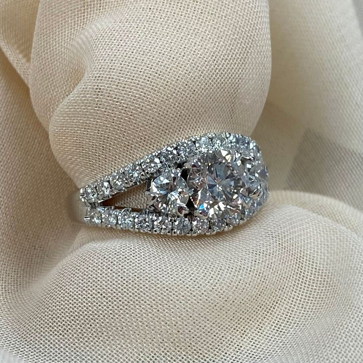 Anello GIA Con 3 Pietre Di Diamante Marrone Chiaro Da 2.10 TCW In Oro Bianco 14k