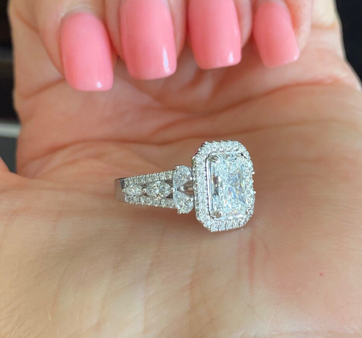 Diamond taglio radiante IGI 2.02 CT E-VVS2 Ring di fidanzamento coltivato da laboratorio 14K oro bianco