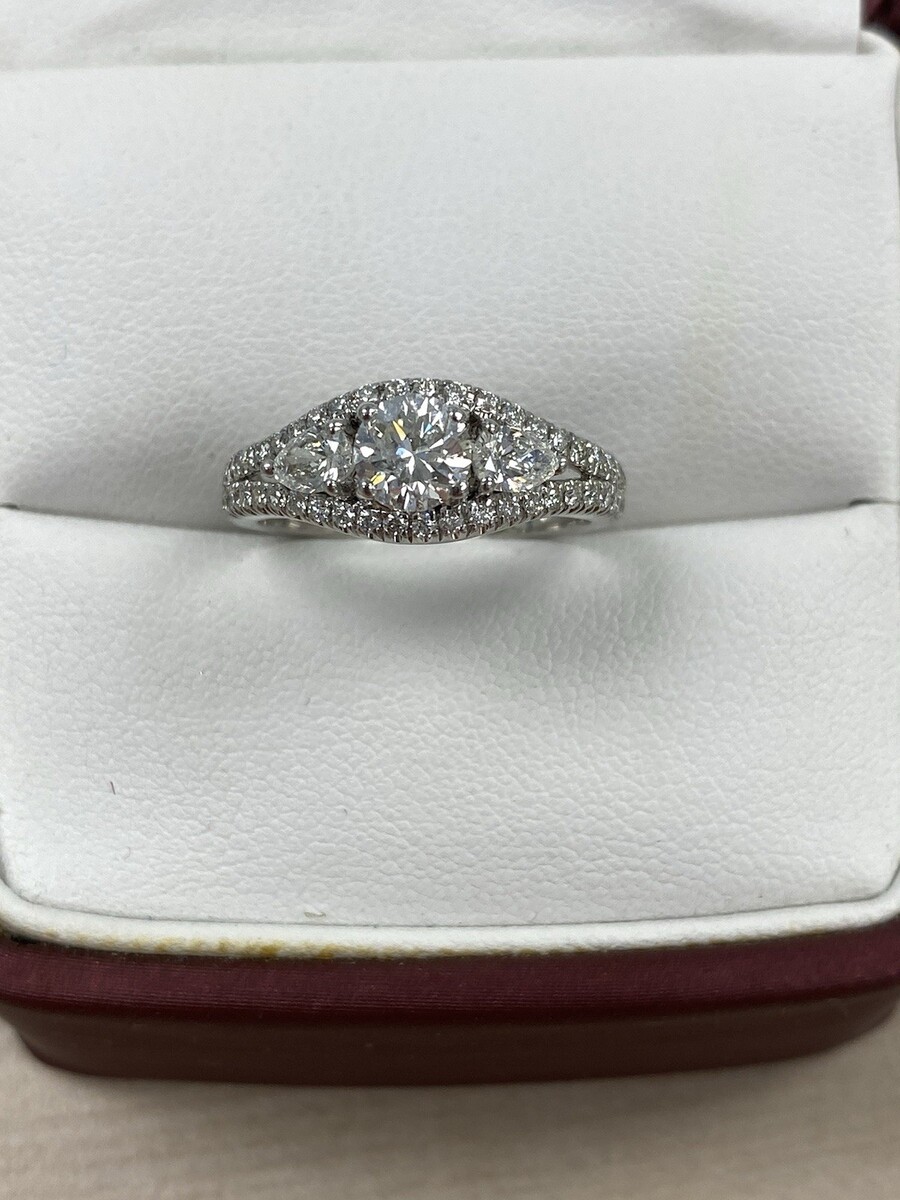 GIA Round 3 Stone F - SI2 Diamond Engagement 1.38 TCW Ring 14k White Gold