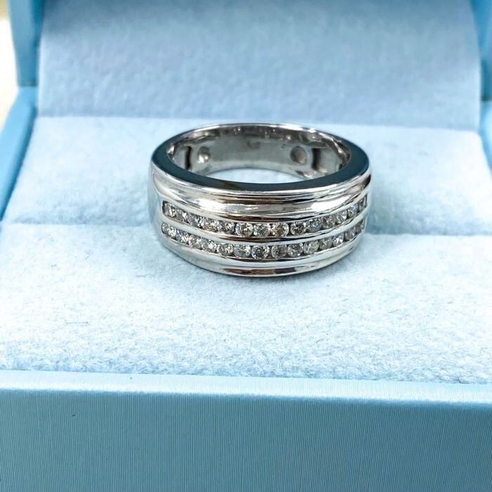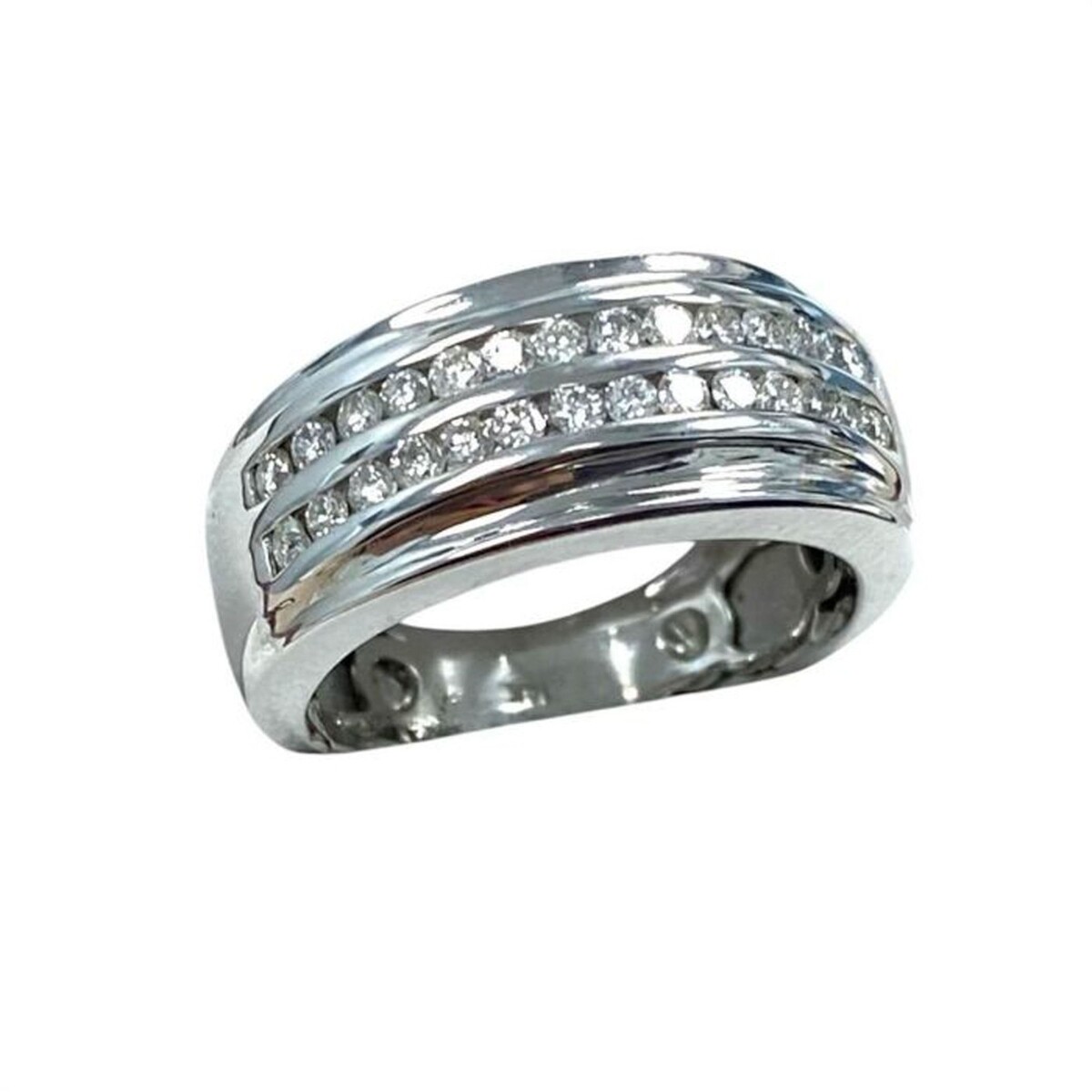 Diamond Men's Wedding Band Anniversary Ring 14K White Gold 0,65 CT, 9 mm