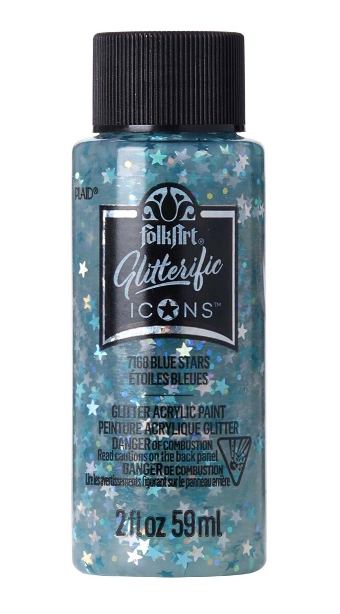 Folkart Glitterific Icons Acrylic Paint, Blue Stars, 2 Fl. Oz.