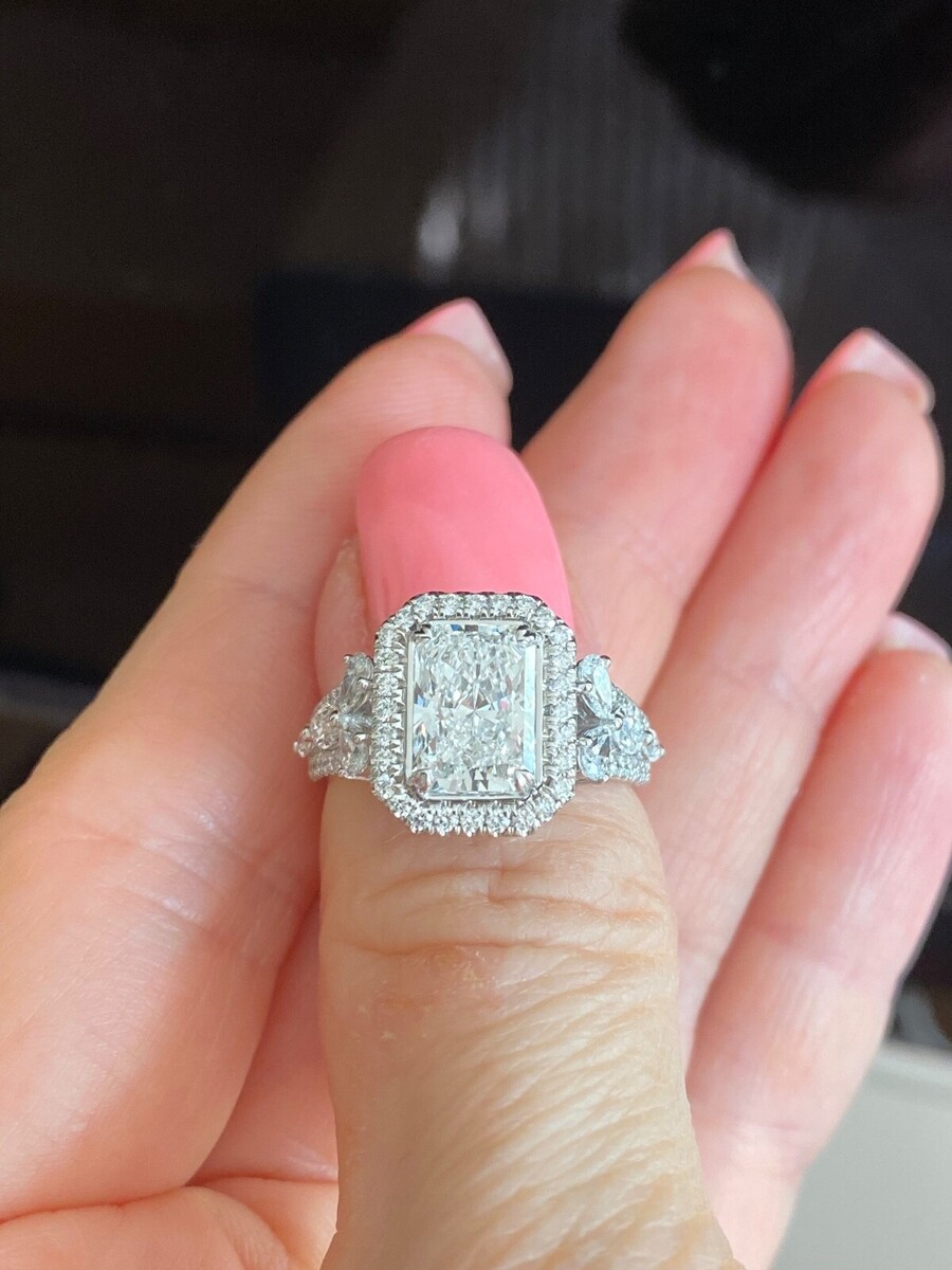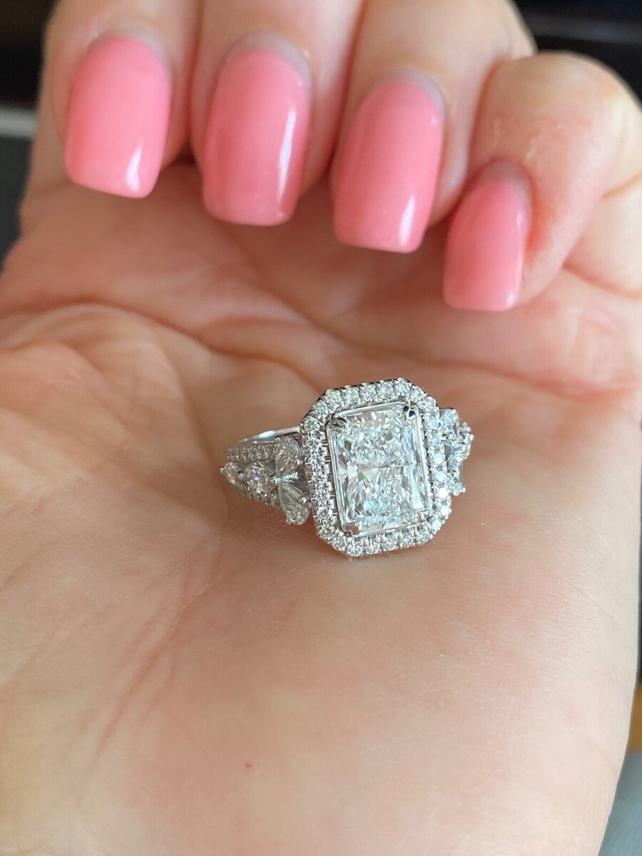 2.72 Cts Radiant Coupe E-VVS2 Igi Labo Grown Diamant 3 Pierre Fiancailles Bague