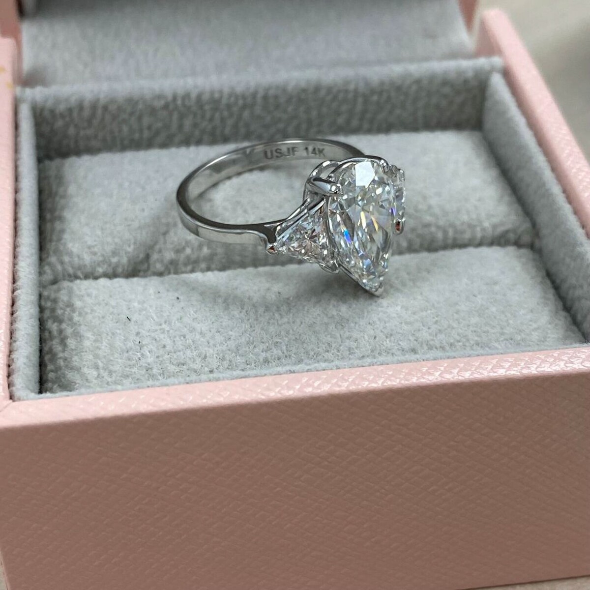 Igi 4.04 Carats (3.08CT) Labo Grown Poire Brillant Cut Diamond Ring 14k or Blanc