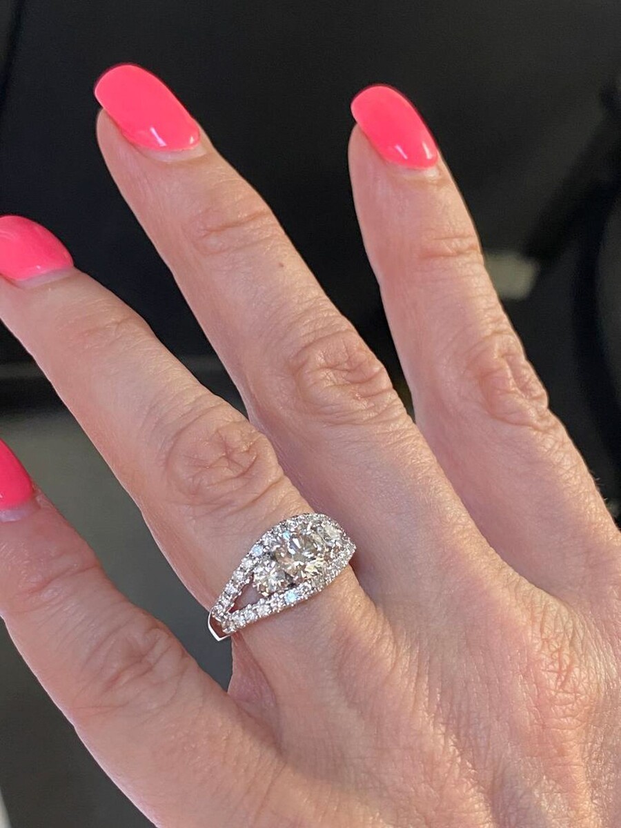 GIA Round 3 Stone Diametro de diamante marron tenue 2.10 TCW Anillo de 14k oro blanco
