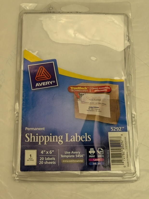 Shipping label stickers stay securely in place with permanent adhesive