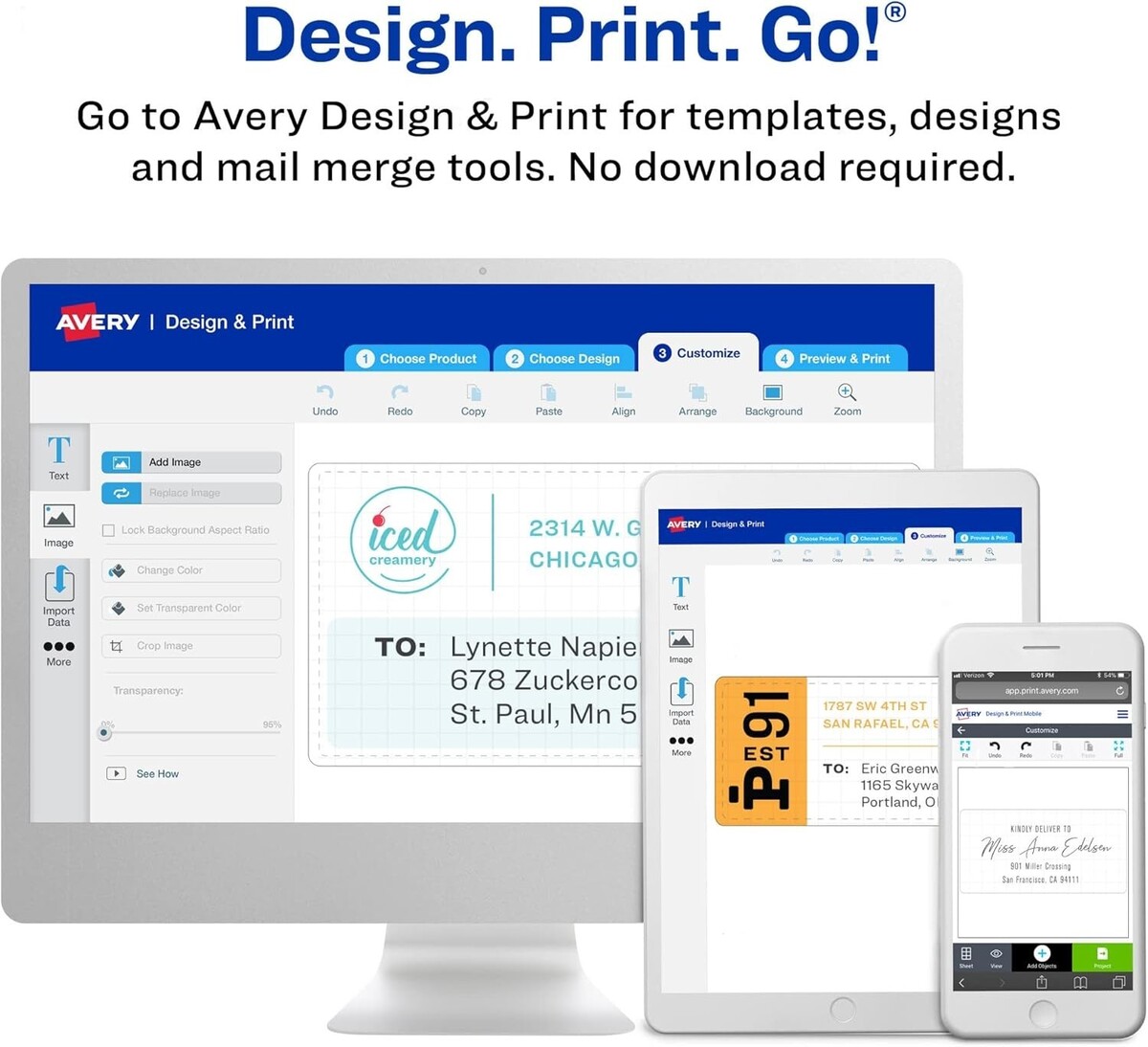 Personalize shipping address labels by hand or use the free templates and designs on the Avery website