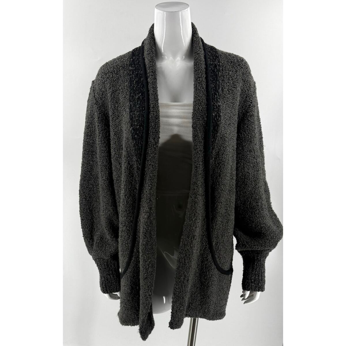 Sideffects VTG Oversized Cardigan Sweater Jacket Sz Large Gray Marled Open Front
