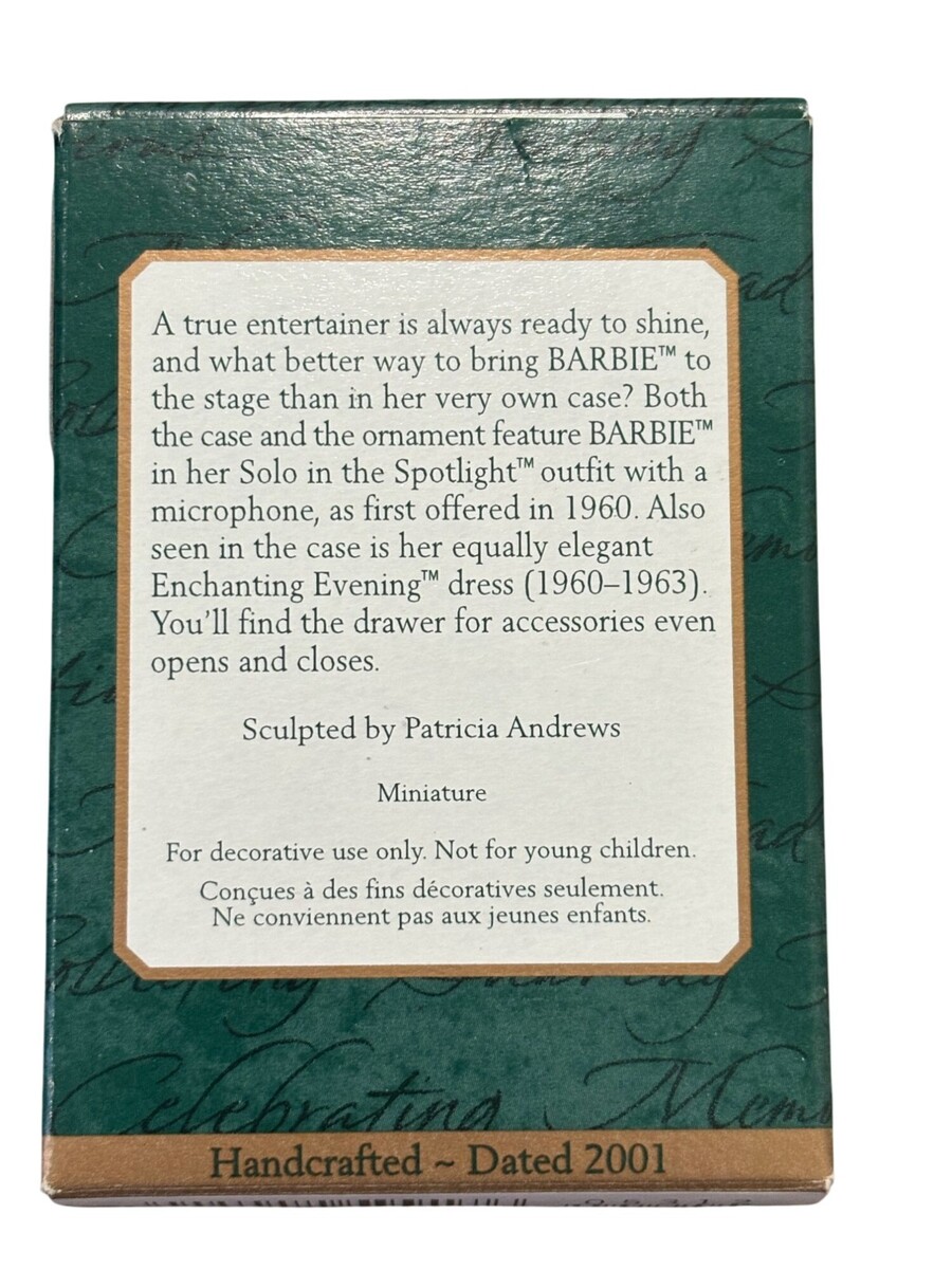Barbie Ornament & Case Keepsake Decor Hallmark 2001 Solo In The Spotlight Enchan