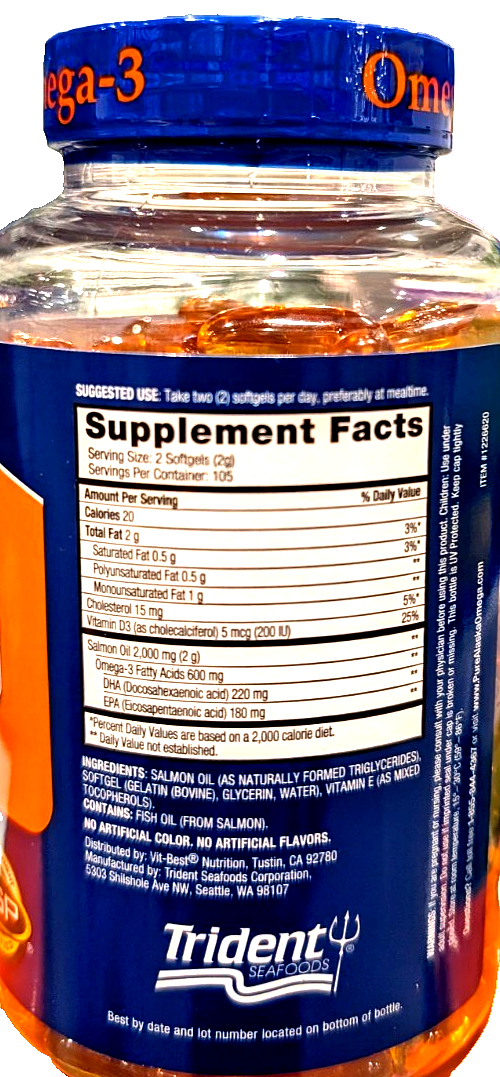 Pure Alaska Omega-3 Wild Alaskan Salmon Oil NEW LABEL 1000mg 210 ct EXP 09/2027