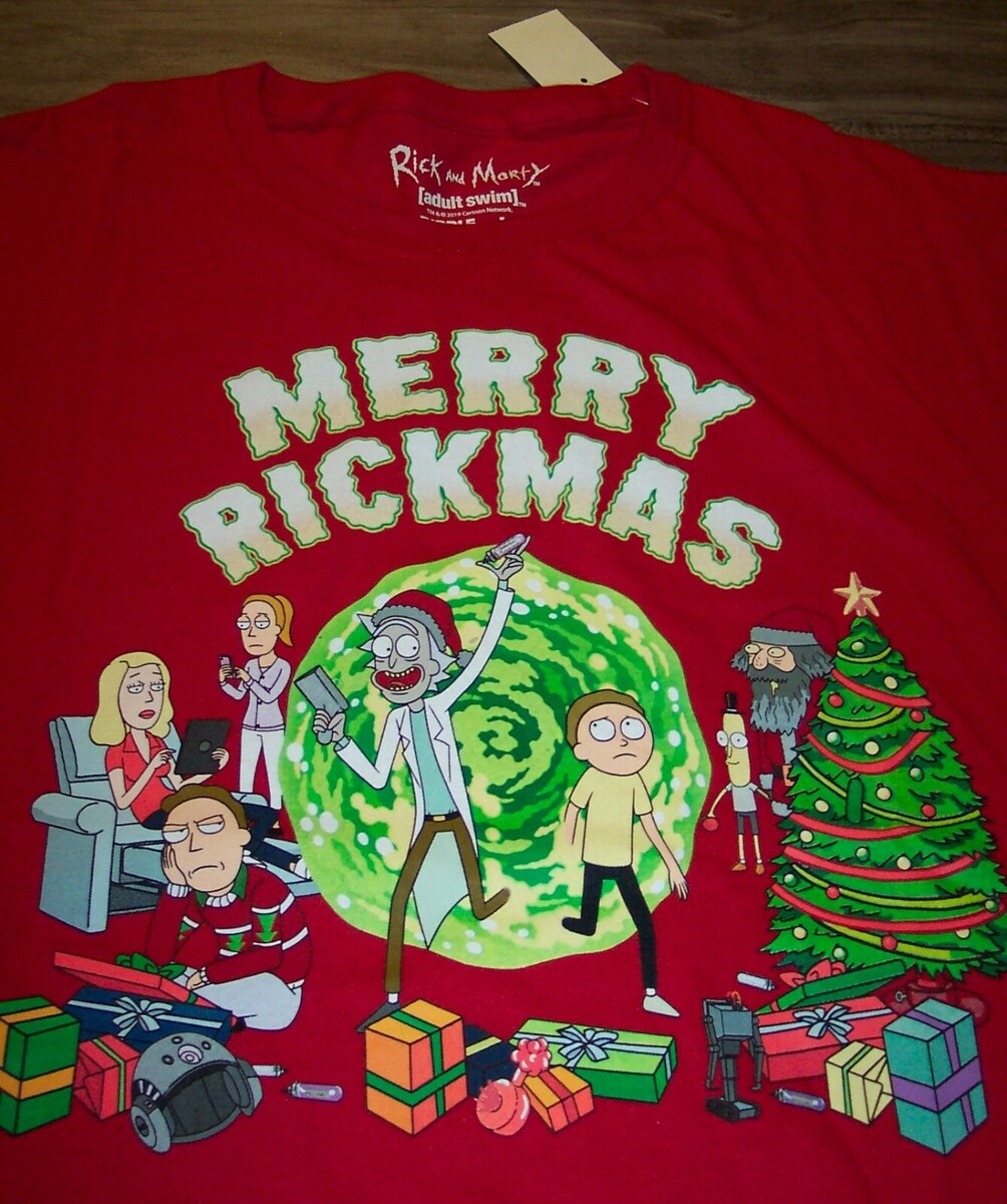 FUNNY RICK & MORTY MERRY RICKMAS Happy Holiday CHRISTMAS T-Shirt 2XL XXL NEW