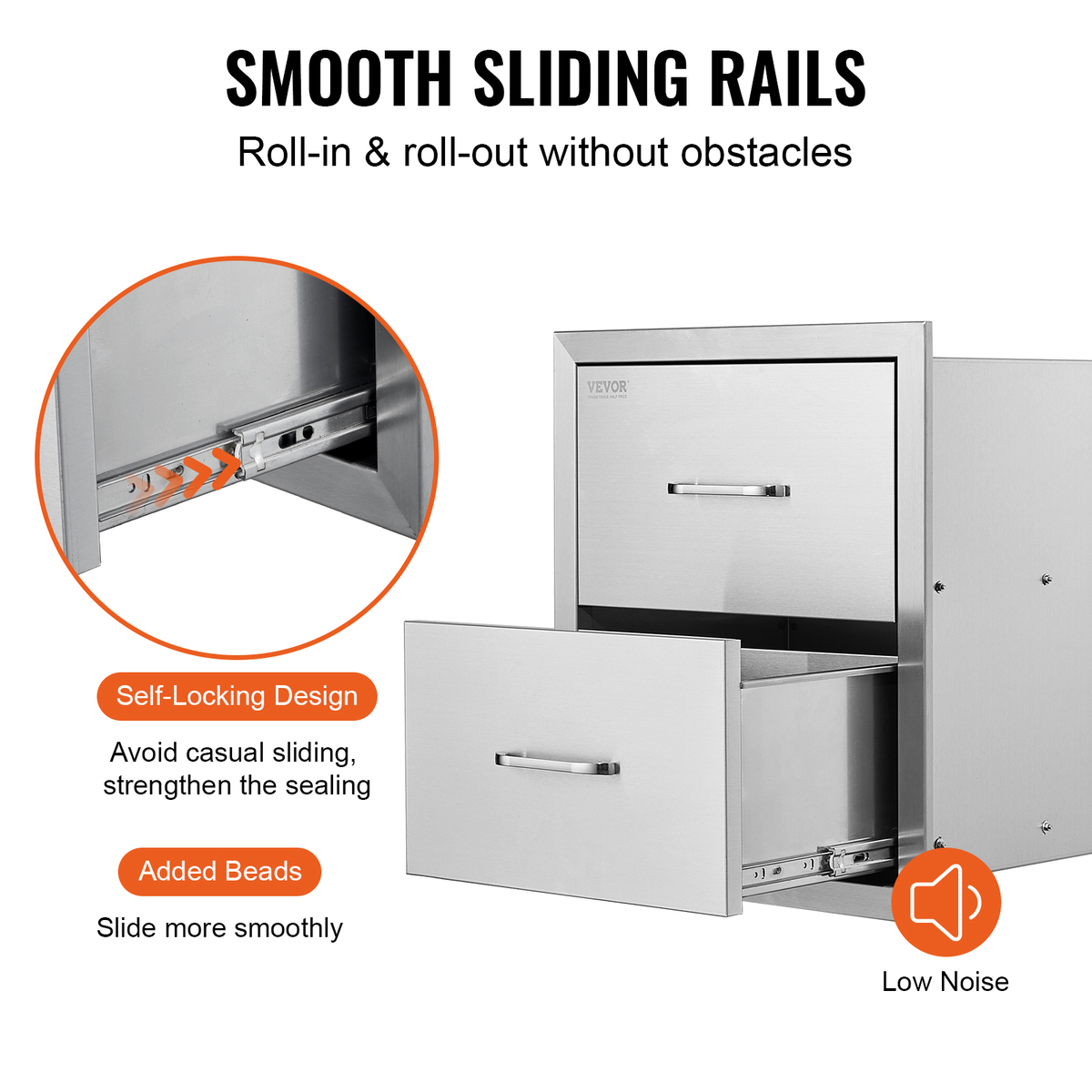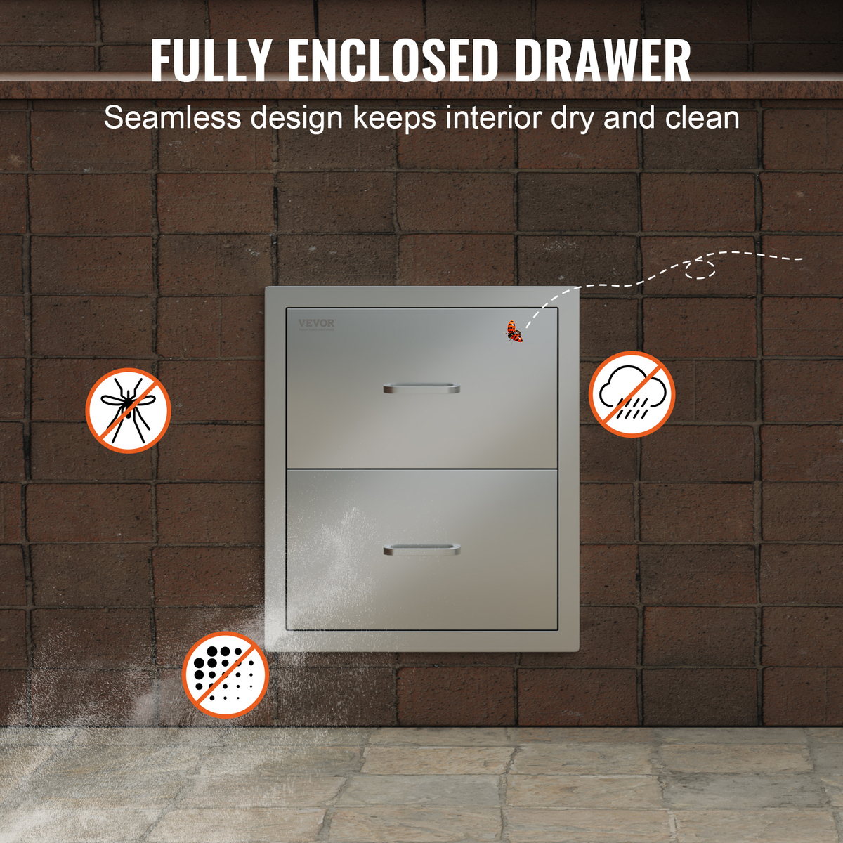 VEVOR Outdoor Kitchen Drawers 17.8x20.2x12.2 in, Flush Mount 2 Drawers & Handle