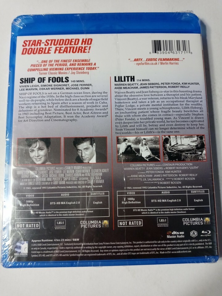 Ship of Fools and Lilith (Blu-ray Disc, 2013) Vivien Leigh Jean Seberg Brand New. Condition is "Brand New". Shipped with USPS Media Mail.New Condition ;