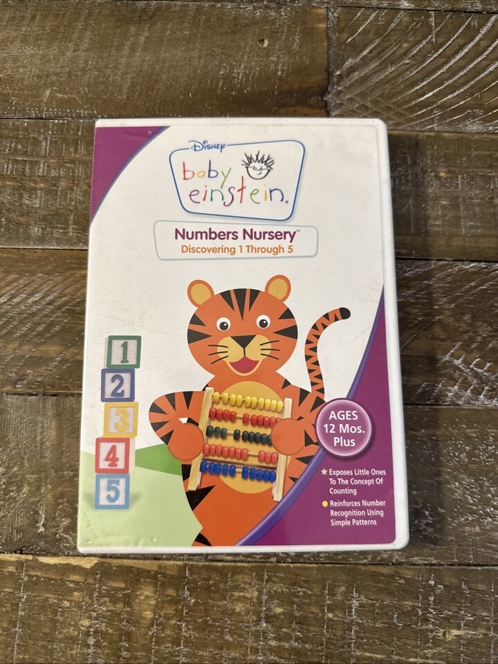 The Baby Einstein Numbers Nursery Discovering 1 Through 5 DVD is a educational DVD designed for young children. It features the popular Baby Einstein series, which is known for its engaging and interactive content. This DVD focuses on introducing numbers 1 through 5 in a fun and colorful way, making learning engaging and entertaining for little ones. Perfect for parents looking to help their children develop early math skills in a playful manner.