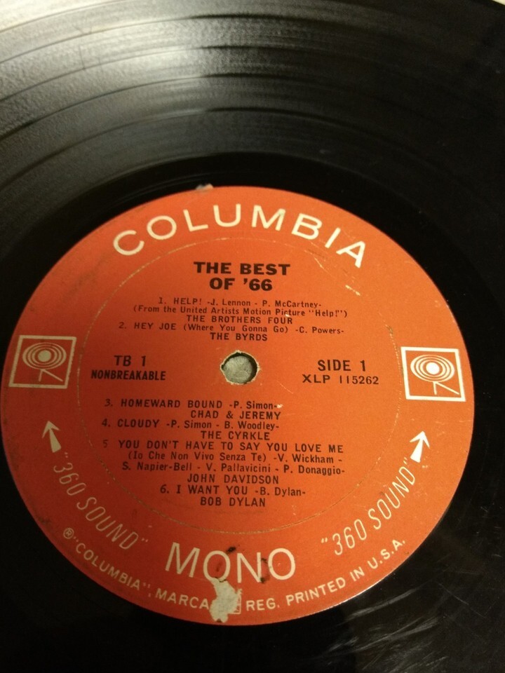 Disc only THE BEST OF '66 VOLUME ONE COLUMBIA RECORDS VINYL LP EX