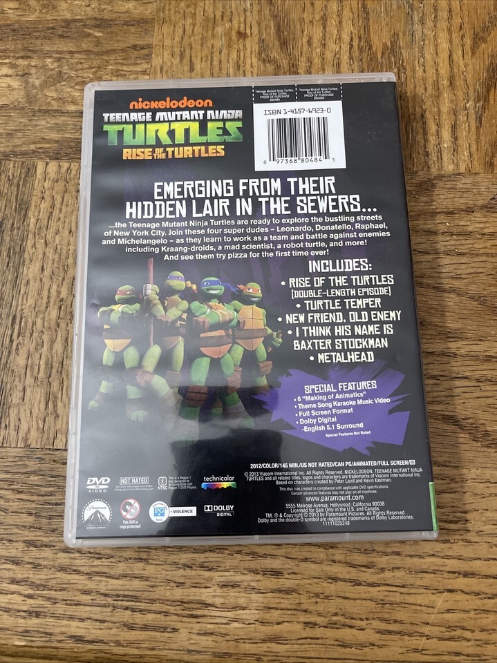 Get ready to join the Teenage Mutant Ninja Turtles in their latest adventure with this DVD of "Teenage Mutant Ninja Turtles: Rise of the Turtles." This action-packed movie features your favorite characters as they battle their enemies to save the city. Released in 2013, this DVD is perfect for any fan of the Nickelodeon cartoon series.