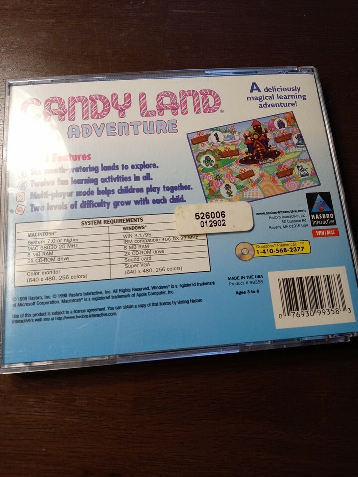 Candy Land Adventure (Jewel Case) - PC/Mac. Condition is "Very Good". Shipped with USPS First Class.Very Good Condition ; Condition is Used-See Pictures Attached For Exact Condition . Shipped with USPS First Class Mail . You Will Receive 1 ea PC CD ROM as shown in pictures attached. SHIPS N 24 HOURS Packed By Our Award Winning Packaging And Shipping Department Long Time E-commerce Seller For Over 20 Years LIMITED AVAILABILITY THANK YOU FOR SUPPORTING OUR FAMILY OWNED USA BUSINESS Collectible Very Good Condition PC CD ROM (Has Wear See Pictures Attached For Exact Description) - CD's Are Tested And Cleaned With Our Professional CD Cleaning Equipment Before Shipped - Ships Immediately - Great Product at a Unbelievable Price - Your Chance To Own This Collectible PC CD ROM Before Its Gone. Inventory Box #6214