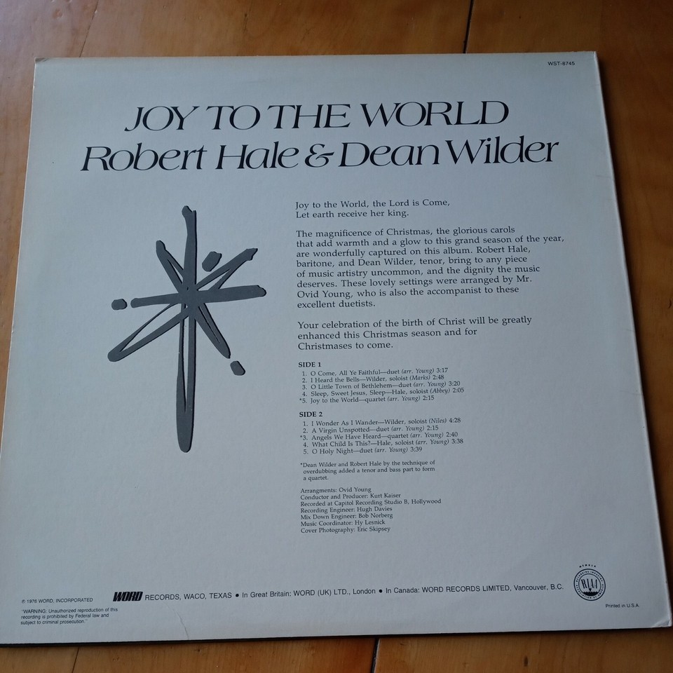 JOY TO THE WORLD~Robert Hale & Dean Wilder Vinyl Lp~WORD RECORDS~WST-8745