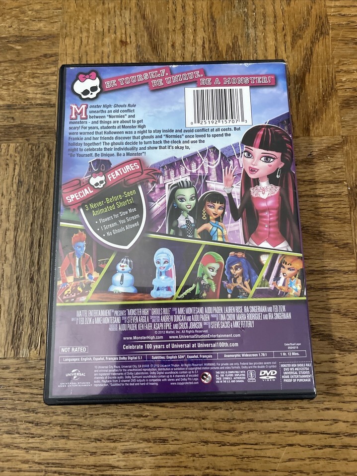 Get ready for some spooky fun with Monster High: Ghouls Rule DVD! This DVD features the ghoulish adventures of your favorite Monster High characters in their quest to save their school from a mysterious threat. This DVD is perfect for fans of animation and anime, with a NR rating that makes it appropriate for all ages.