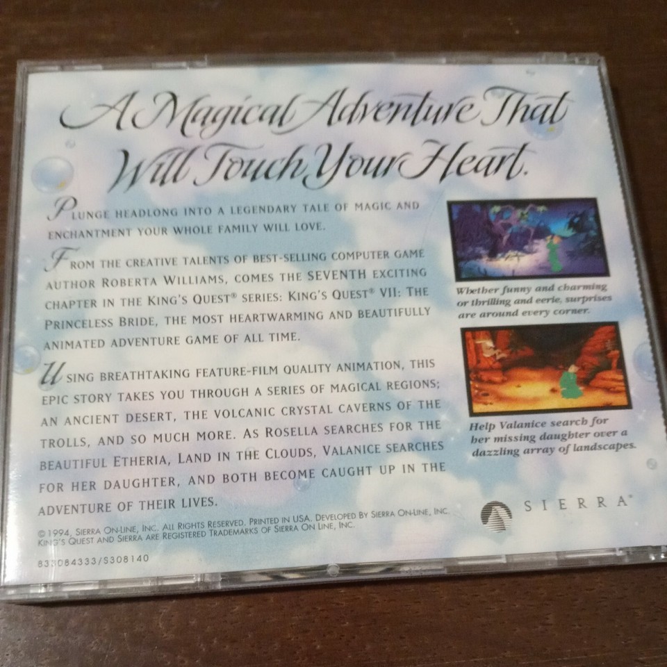 King's Quest VII The Princess Bride with manual Sierra PC CD-Rom game 1994.Very Good Condition ; Condition is Used-See Pictures Attached For Exact Condition . Shipped with USPS First Class Mail . You Will Receive 1 ea PC CD ROM as shown in pictures attached. SHIPS N 24 HOURS Packed By Our Award Winning Packaging And Shipping Department Long Time E-commerce Seller For Over 20 Years LIMITED AVAILABILITY THANK YOU FOR SUPPORTING OUR FAMILY OWNED USA BUSINESS Collectible Very Good Condition PC CD ROM (Has Wear See Pictures Attached For Exact Description) - CD's Are Tested And Cleaned With Our Professional CD Cleaning Equipment Before Shipped - Ships Immediately - Great Product at a Unbelievable Price - Your Chance To Own This Collectible PC CD ROM Before Its Gone. Inventory Box #6006