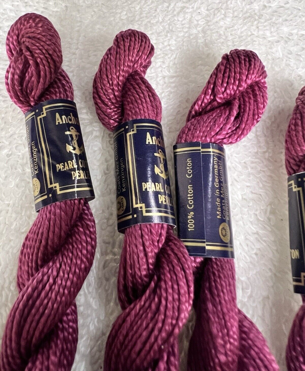 4 MINT Anchor Perle Pearl Cotton #972 Drk Pink Embroidery Floss Vintage Skein the color is closer to the last photo than the 1st