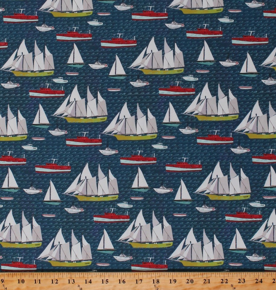 Cotton Sailboats Nautical Ocean Sea Boats Beach Lakeside Story Cotton Fabric Print by the Yard (13352-12)