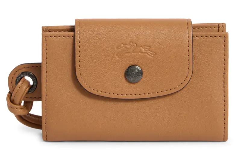 Longchamp Le Pliage Cuir Leather Card Holder Case Lanyard ~NIB~ Hazelnut