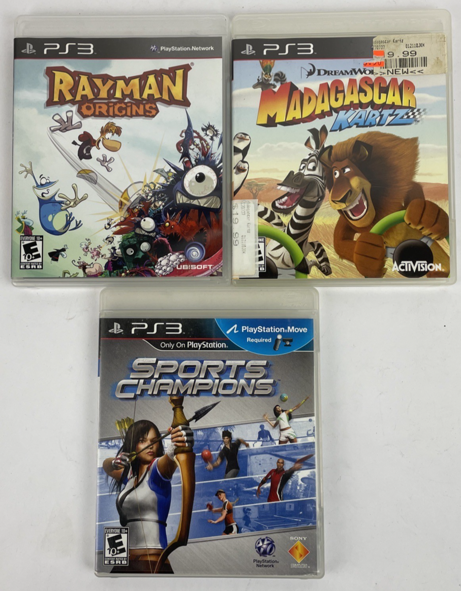 3 x PS3 PlayStation 3 - Madagascar KARTZ - RAYMAN Origins - Sports Champions VGC
