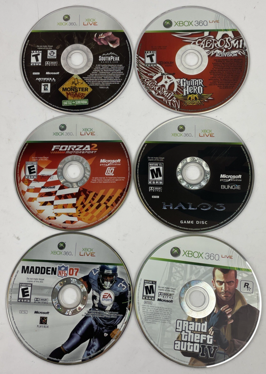 6 x XBOX 360 XBOX Live Aerosmith, HALO 3, GTA4, Madden, Forza 2, Monster Maddnes