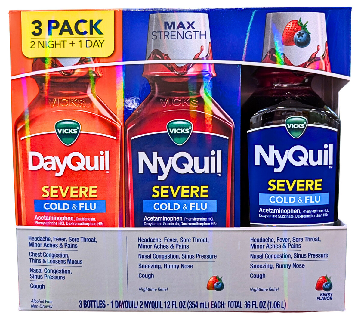 Vicks DayQuil & NyQuil Severe Cold & Flu Relief Liquid Berry 3 x 12 Fl Oz ED4/27