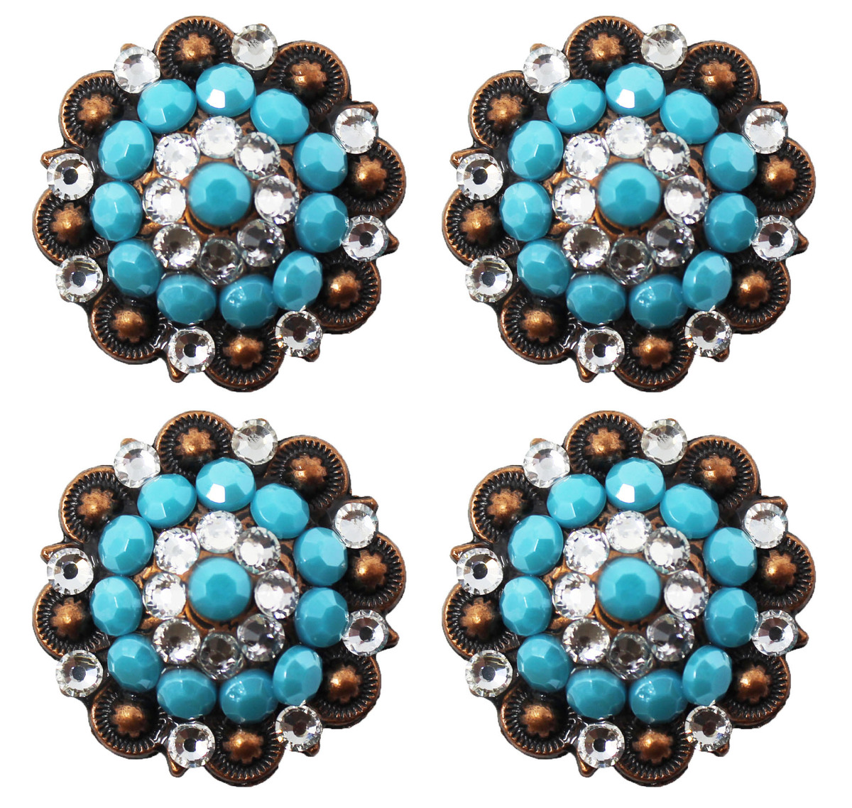4 Conchos Rhinestone Horse Saddle Western Rodeo Bridle Berry Turquoise CO84
