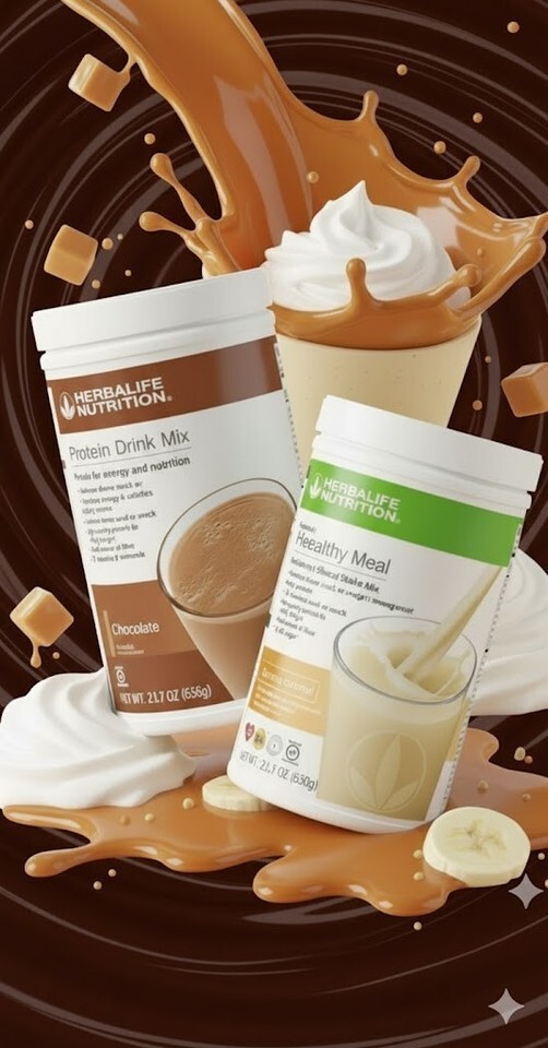 Enjoy the perfect mix of indulgent chocolate and smooth banana caramel with this Herbalife duo! The Chocolate Protein Drink Mix and Banana Caramel Formula 1 Shake combine to give you a creamy, satisfying shake packed with nutrients, protein, and energy to fuel your active day.