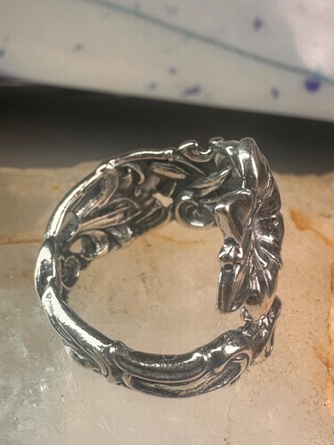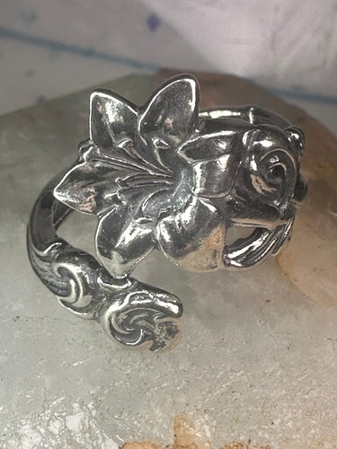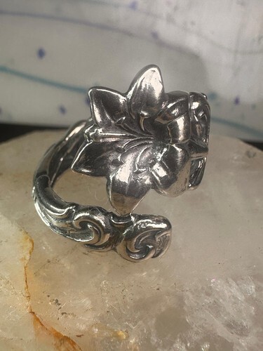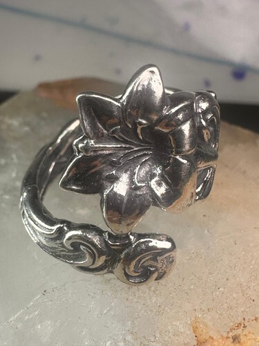Spoon ring Lily flower floral band sterling silver size 7.7 sterling silver