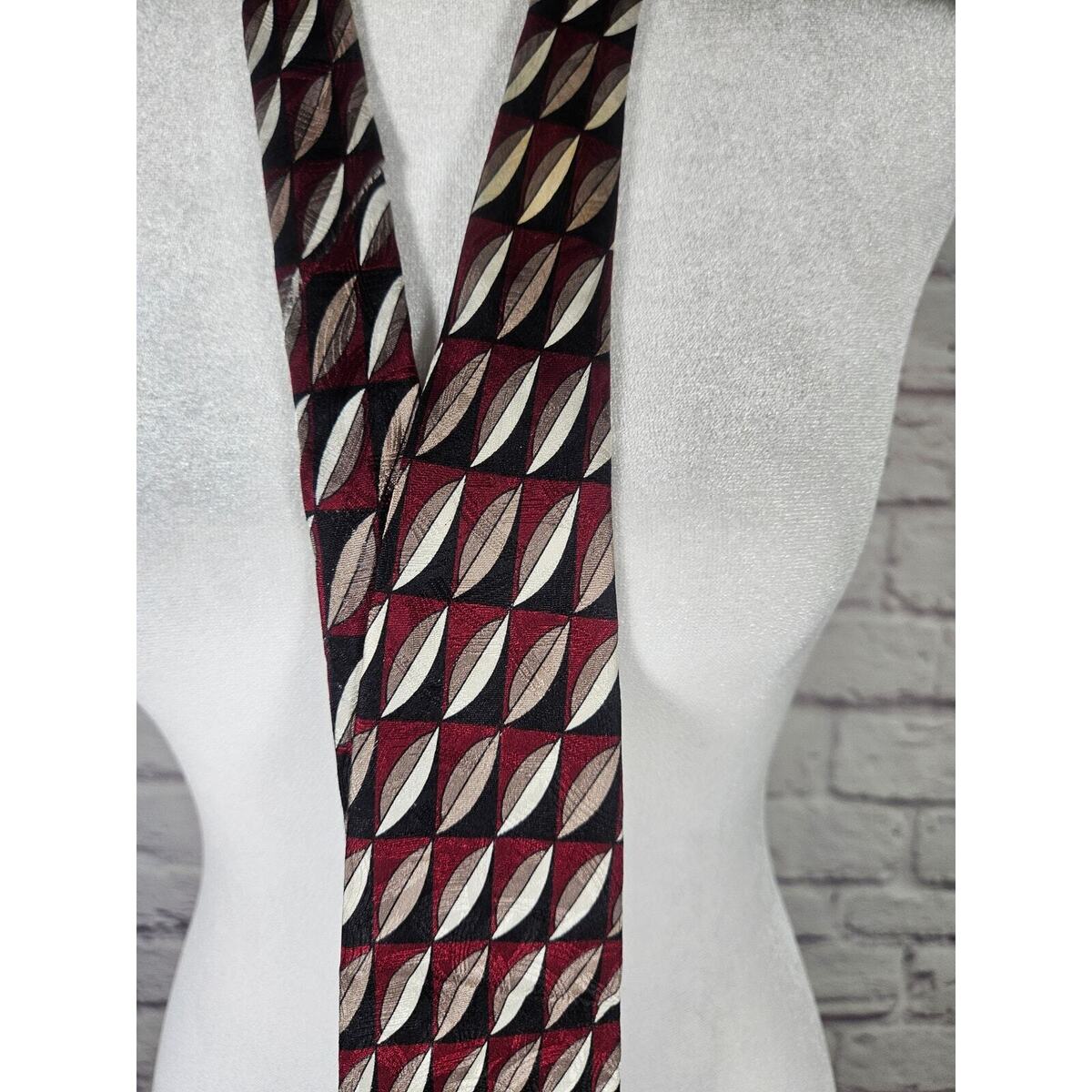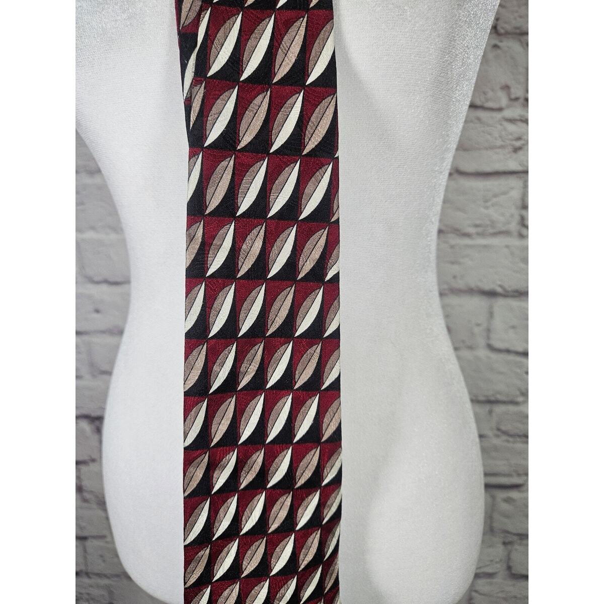 Croft and Barrow Men's Silk Tie 62" Red Black Brown White Leaves