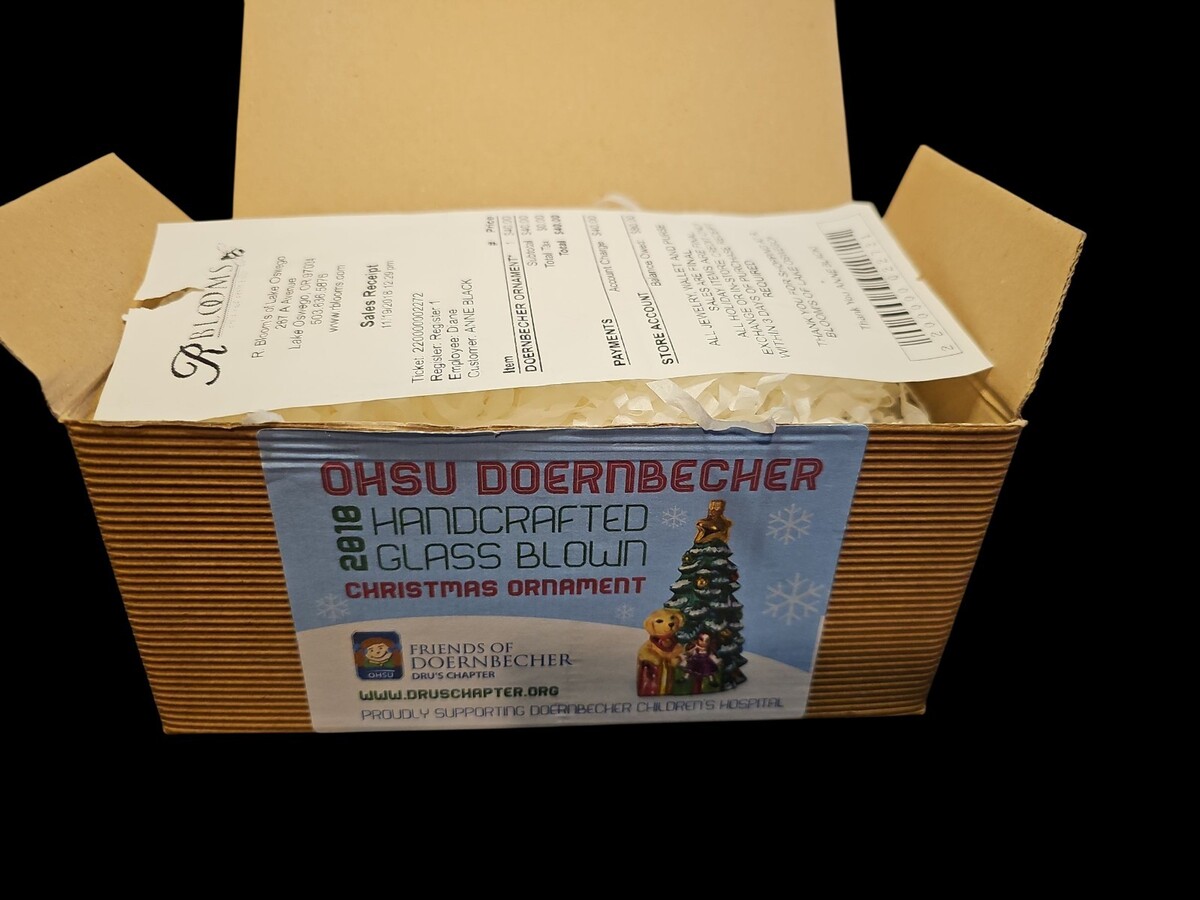 Christopher Radko OHSU Doernbecher 2018 Glass Ornament Tree With Children Box