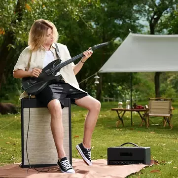 Play Guitar Anywhere: The portable guitar body and fretboard come with a one-click disassembly function, making it easy to store in a suitcase and take anywhere. It includes a built-in 6.35mm jack for connection to various amplifiers and speakers. The long-lasting 10-hour battery life ensures uninterrupted outdoor performances.