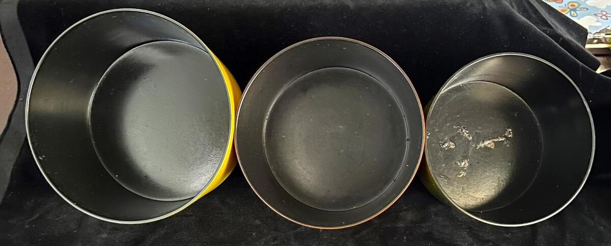 Set of 3 MCM Nesting Snack Bowls Chips Pretzels Nuts w Lid Multicolor Bowls