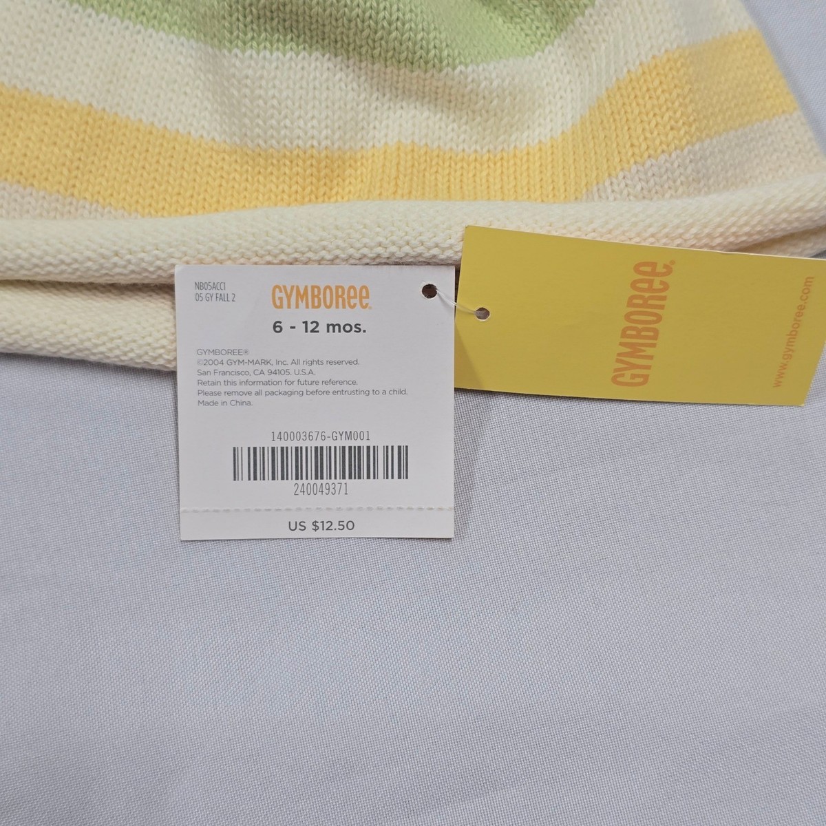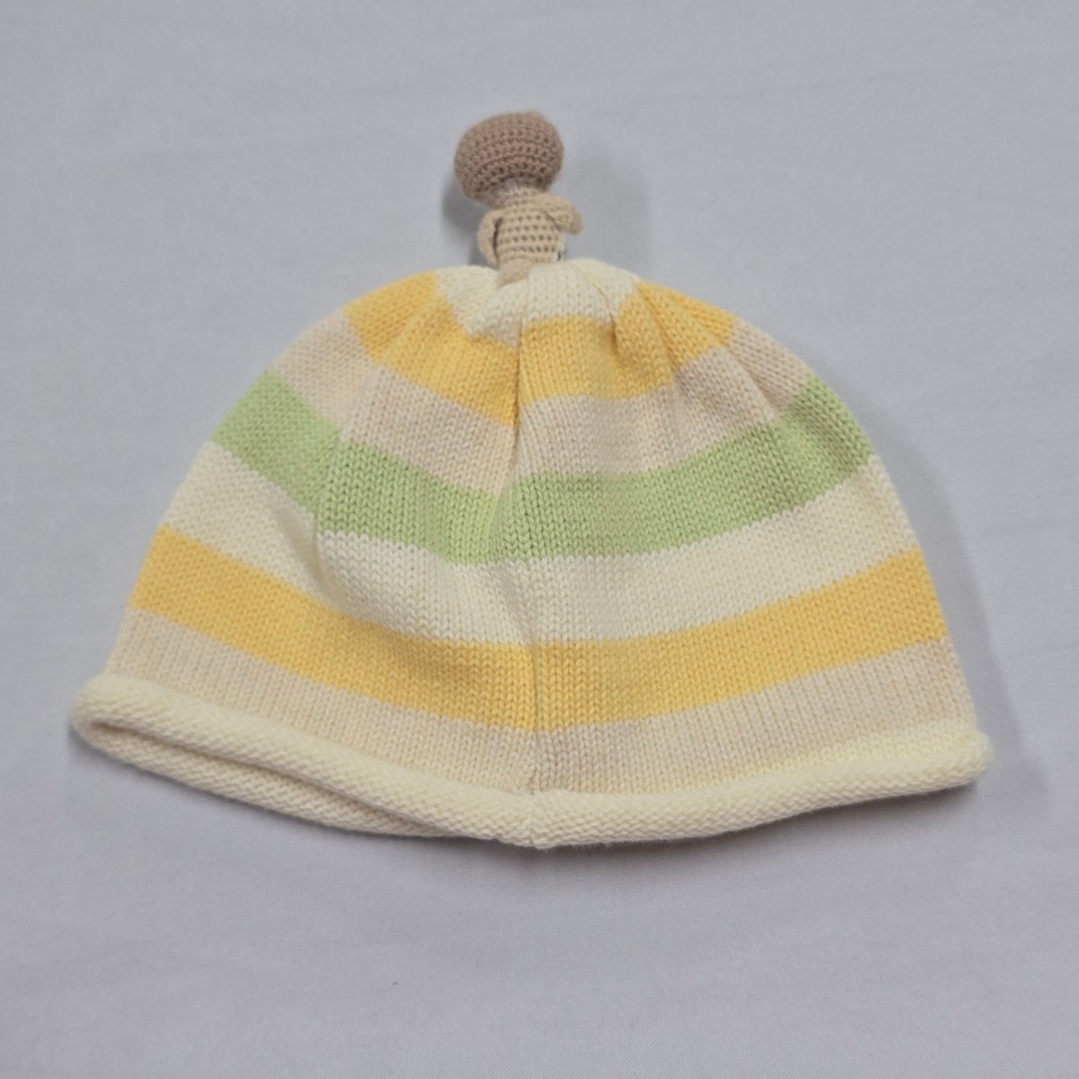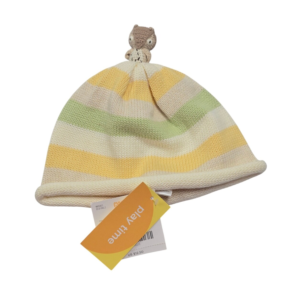 Gymboree Baby Hat Beanie Owl Applique Knit Striped Yellow Green White 6 12 m