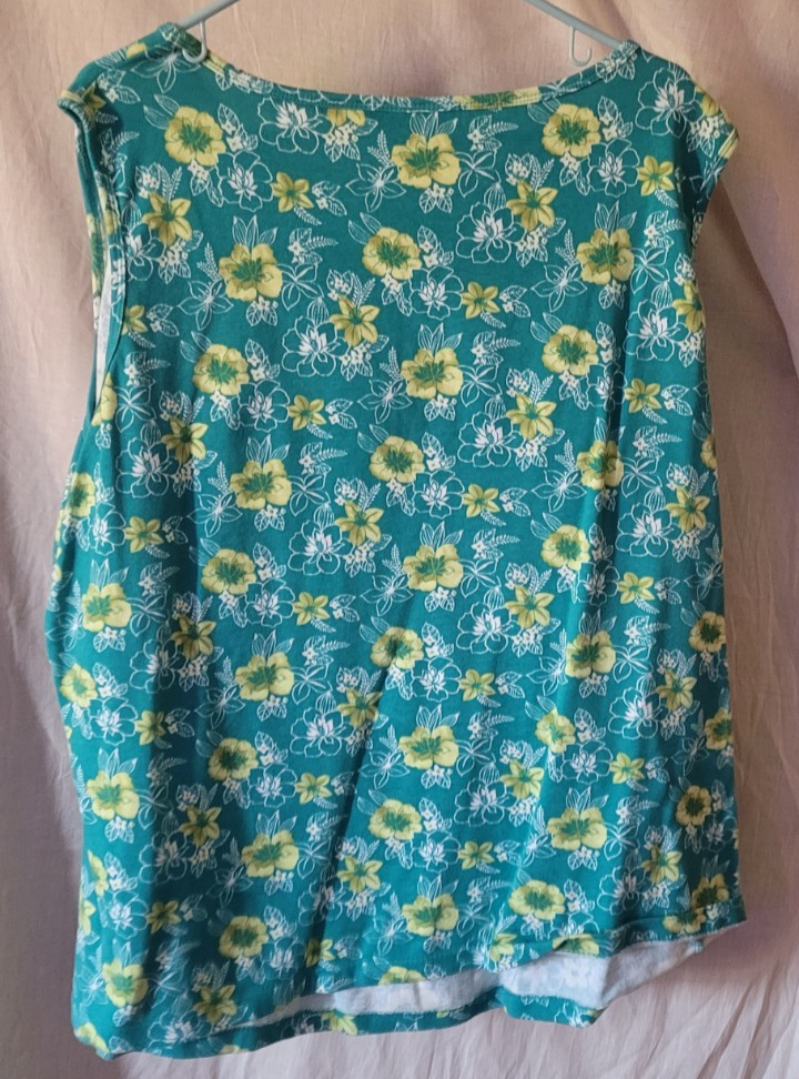 Women's 2Pcs. Shirts Plus Size 26W/28W Tank Top Button-Up Flowers Green Casual