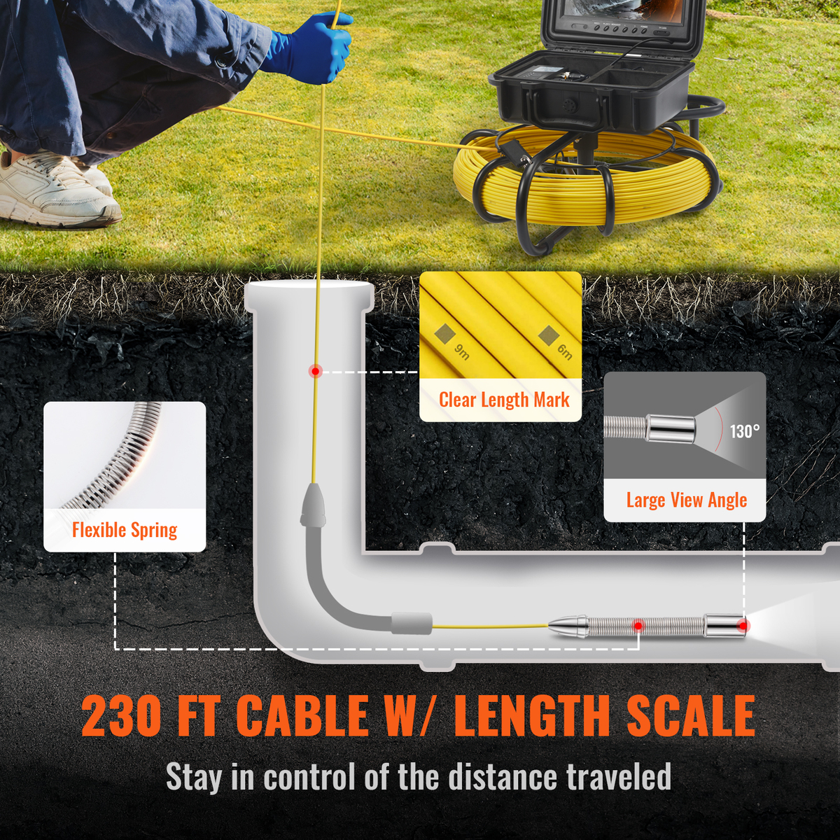 VEVOR Sewer Camera 230 ft, Drain Camera with 9" Screen, with 12 LED, 16GB Card