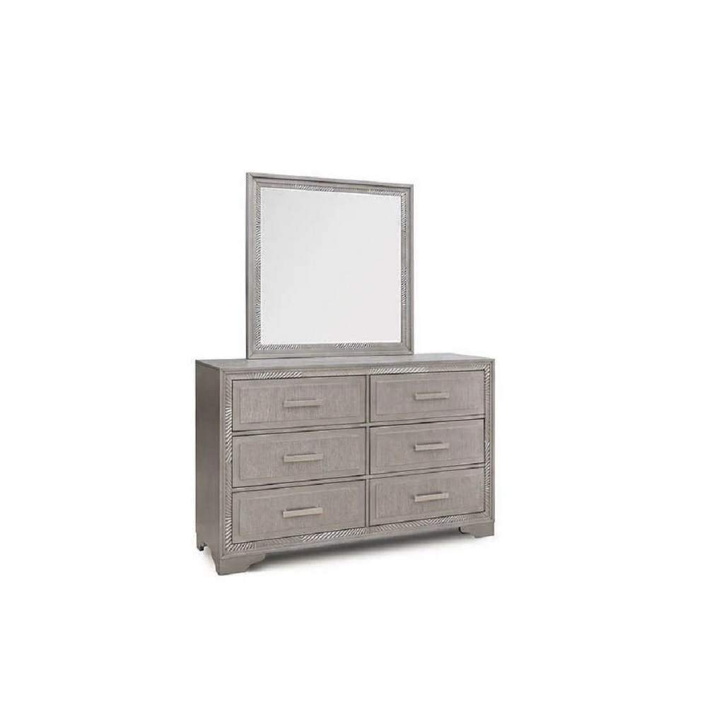 spacious dresser (60" x 18" x 38"), matching mirror (39" x 18" x 56"), and functional nightstand (27" x 17" x 26").