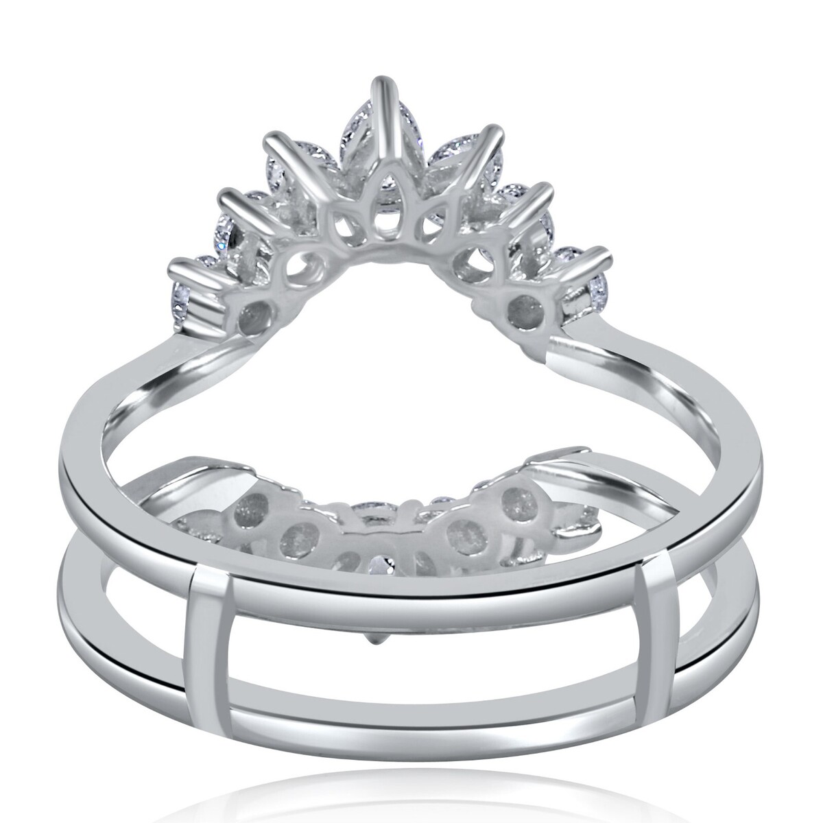 La parure si completa con un doppio potenziatore di diamanti per tiara, progettato per abbracciare perfettamente l'anello di fidanzamento, aggiungendo ulteriore brillantezza e creando un look regale e radioso.