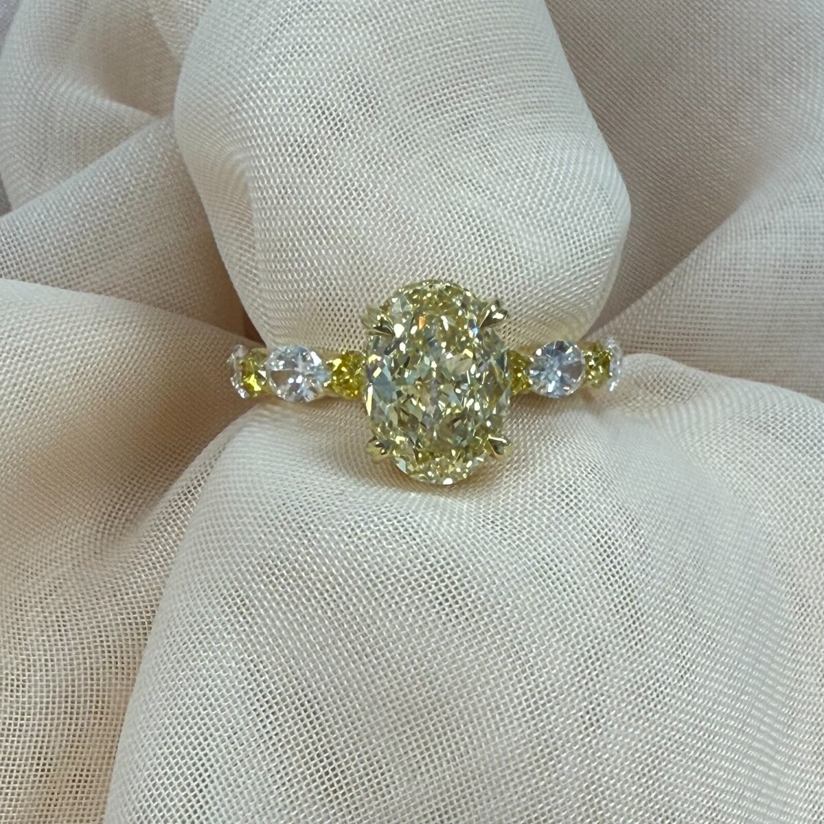 IGI 2.31 Ct Yellow Oval Brilliant Cut Lab Grown Diamond Ring 18k Gold 3.51Ctw
