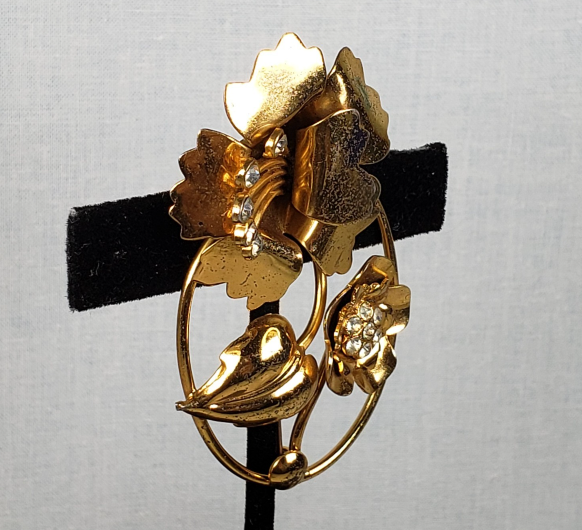 Vtg 1950's Sterling Crysal Rhinestone Vermeil Large Floral Artisan Retro Brooch
